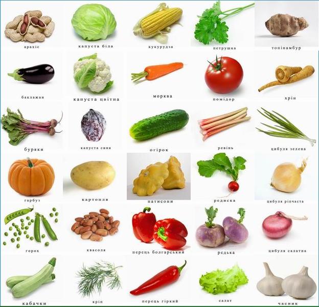 Овочі. Картки односторонні. 27 шт.