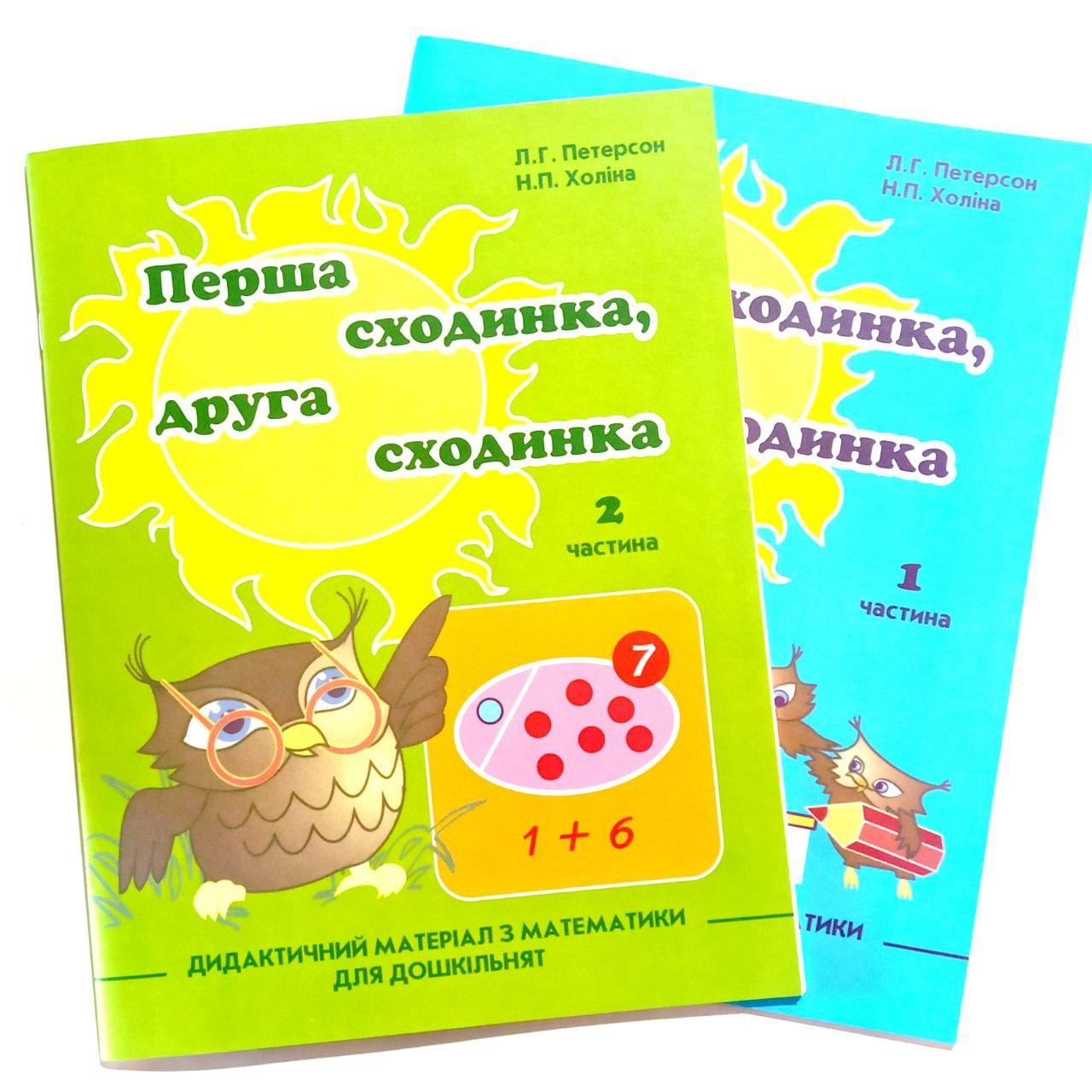 Навчально-методичний посібник “Перша сходинка, друга сходинка” призначений для розвитку математичних уявлень дітей старшого дошкільного віку і підготовки до школи. Він представляє собою складову частину неперервного курсу математики для дошкільнят, початкової та основної школи, який розробляється з позицій комплексного розвитку особистості дитини: розвиток її пізнавальних інтересів, інтелектуальних і творчих сил, якостей особистості.