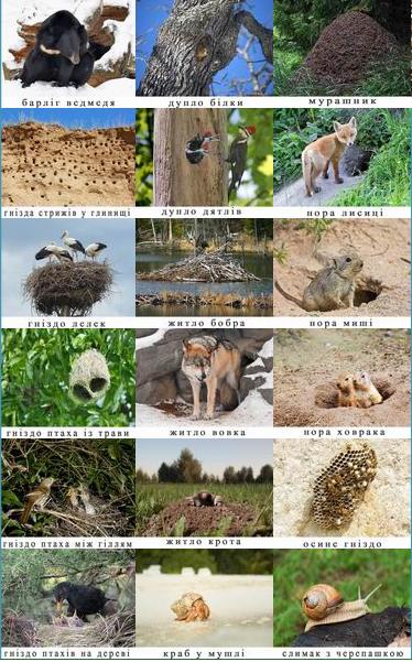 Тварини дикі з дитинчатами . Житло диких тварин. Картки односторонні. 27 шт.