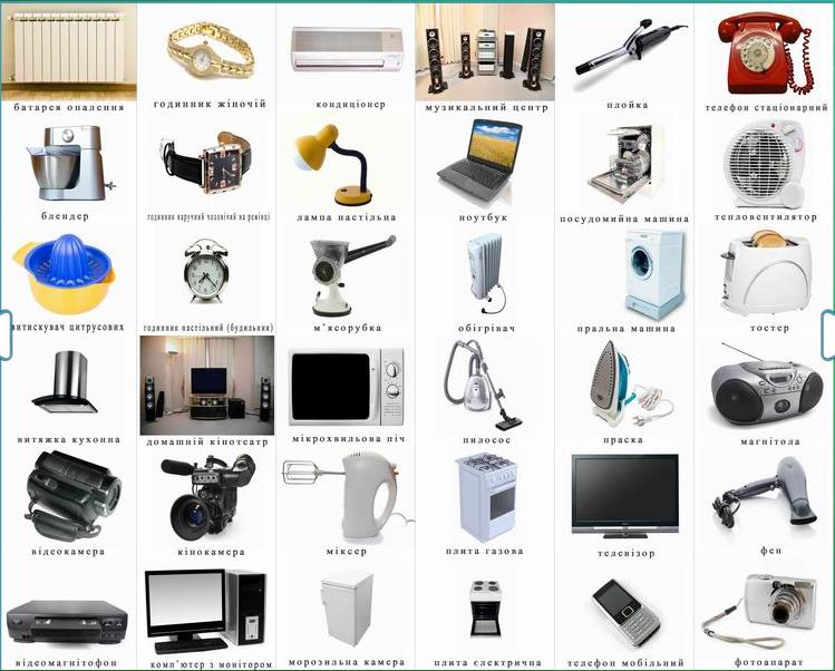 Побутові прилади. Картки односторонні. 27 шт.Побутові прилади. Картки односторонні. 27 шт.