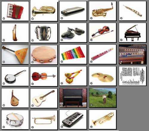 Музичні інструменти. Картки односторонні. 27 шт. 8*12 див.